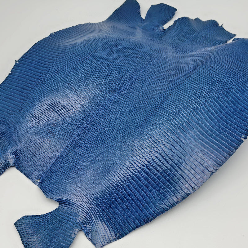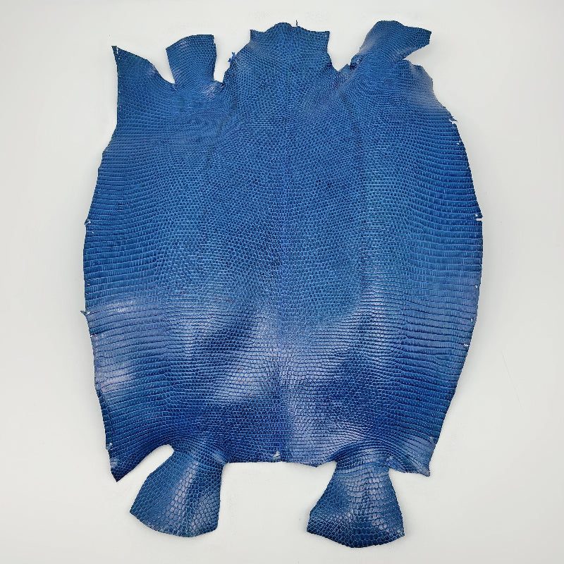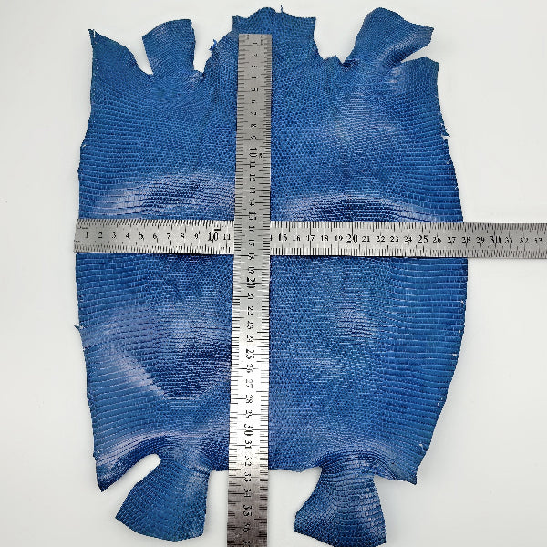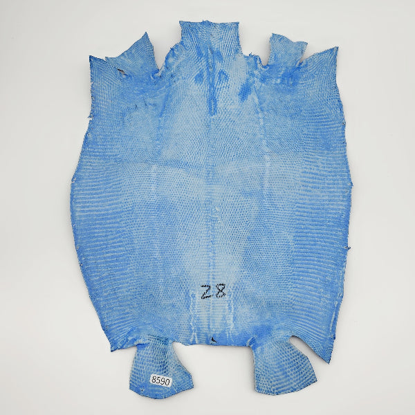 トカゲ革【最大幅28cm】ブルー/ツヤ強/腹割/8590