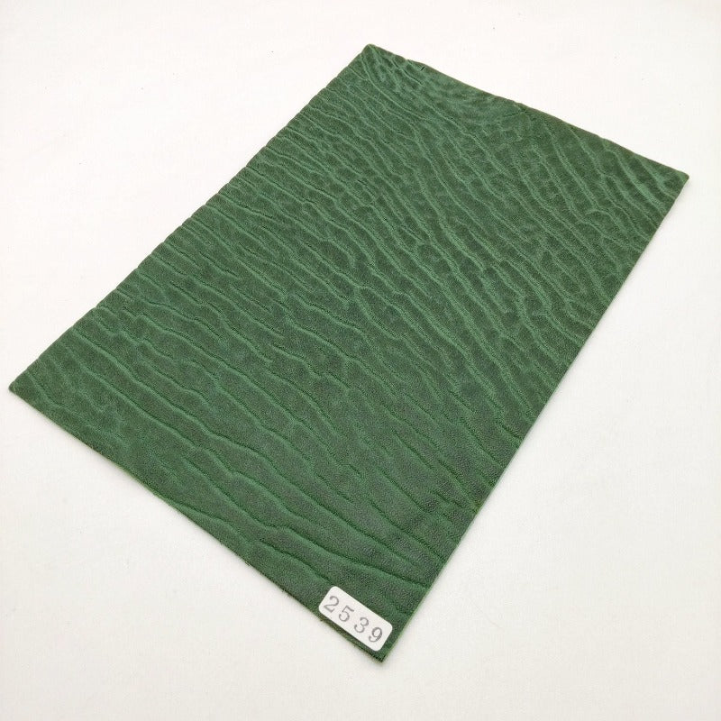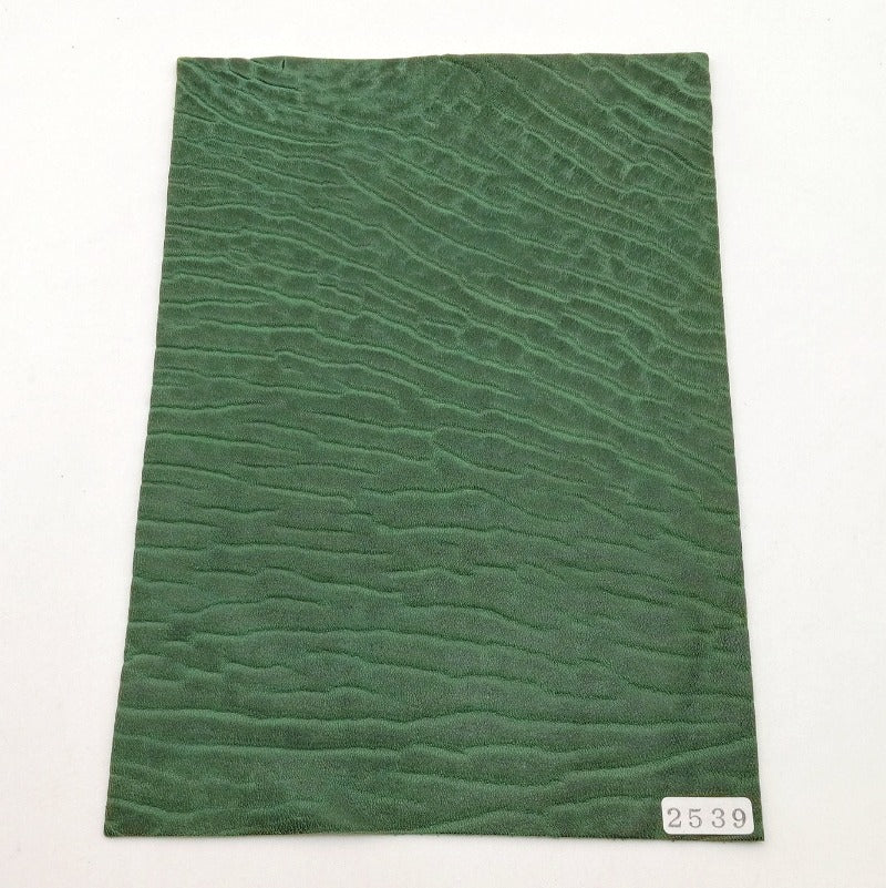 ・とてもしなやかで柔らかいアザラシ革です。凹凸のはっきりしたグリーンで、凸部にツヤ加工を施すことにより立体的な表情となっています