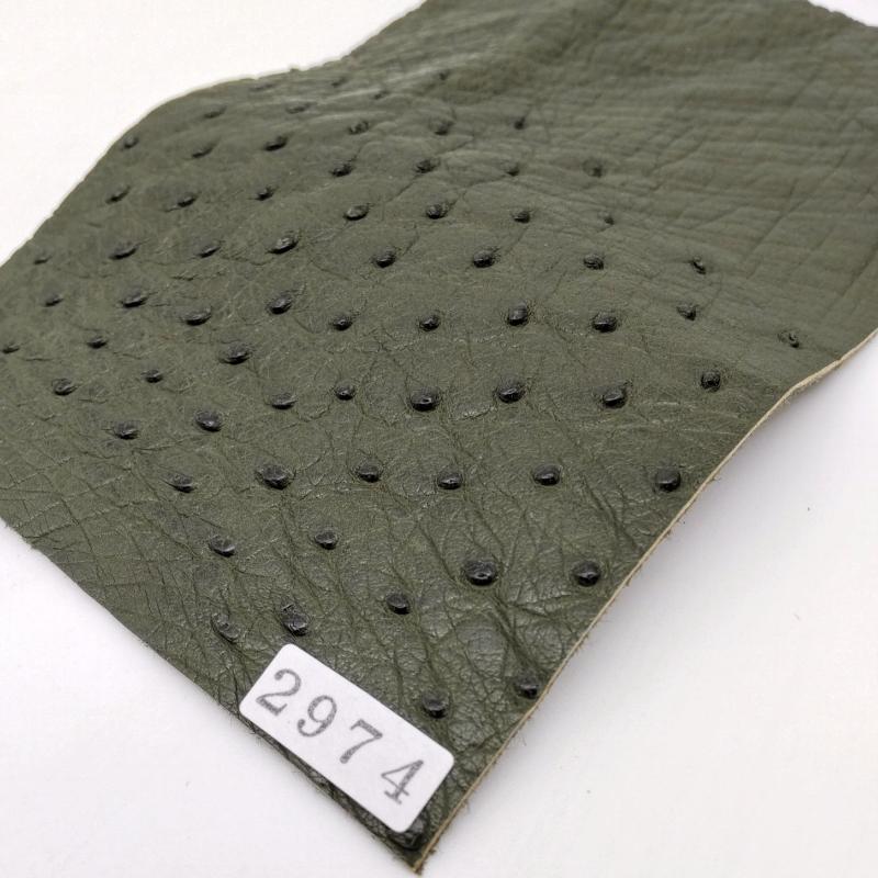 オーストリッチ革【ハガキ/1.0mm】モスグリーン/Sランク/d2974
