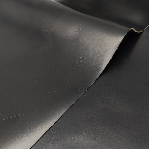・締まった鞣しの牛革、半ツヤ仕上げです。均一でフラットな表面ですが、革本来のシワや凹凸もあります