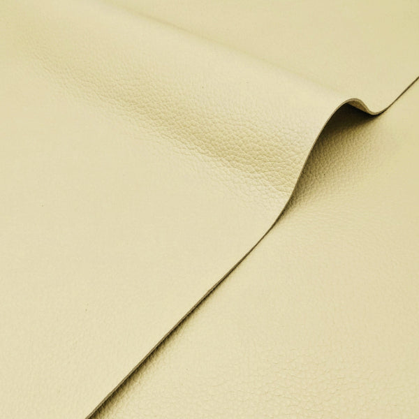 ・適度なコシがある鞣しの牛革です。表面を顔料系調色で均一なカラーに仕上げています。表面には型押しのシボ加工が施されているので、使用後の細かなキズが目立ちにくくなります。カラーはクリームベージュ、光沢弱めの半ツヤ仕上げです