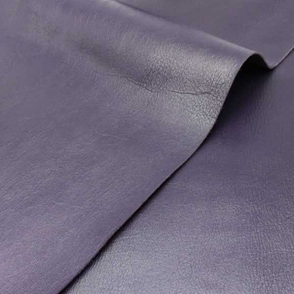 ・適度なコシがありながら、柔らかい鞣しの、芯通し染色牛革です。表面に特別な加工を施さず、自然の革の表情そのままの仕上げです。部位によって表情が異なり、革本来の細かなシワを楽しむことができる革らしい革です。カラーは深みのある紫(ディープパープル)、半ツヤ仕上げです