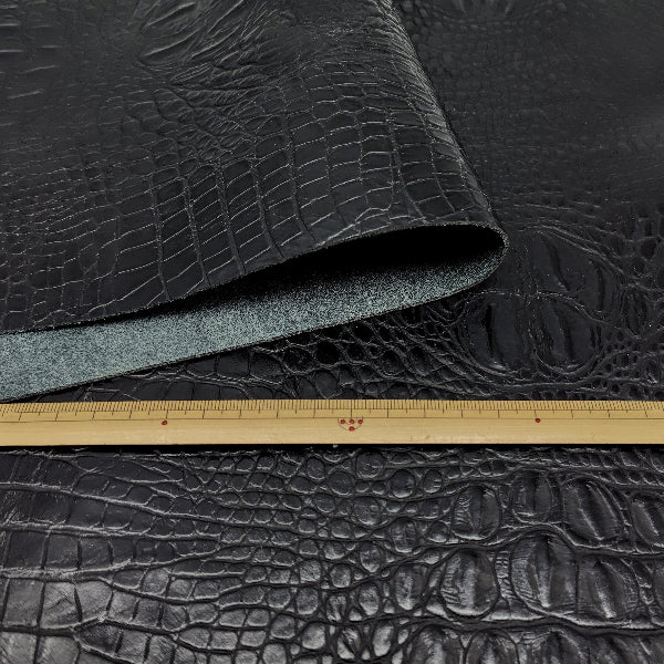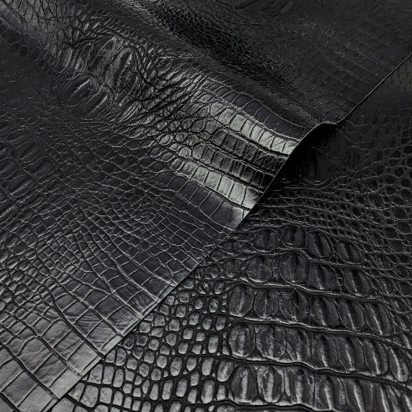 牛革【大ハギレ1枚20デシ/1.4mm】ブラック/クロコ型押/gt-232