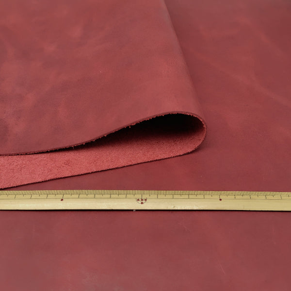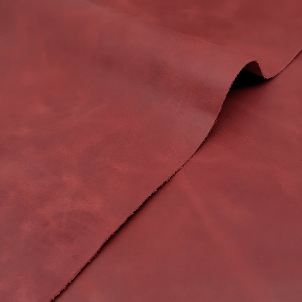 ・オイルが浸透しているため、プルアップ仕上げの色濃淡が現れます(革を山折りすると油分が移動して色が薄くなり、革を押したり揉んだりすると移動した油分が元に戻ります)カラーはインディアンレッド、半ツヤ仕上げです