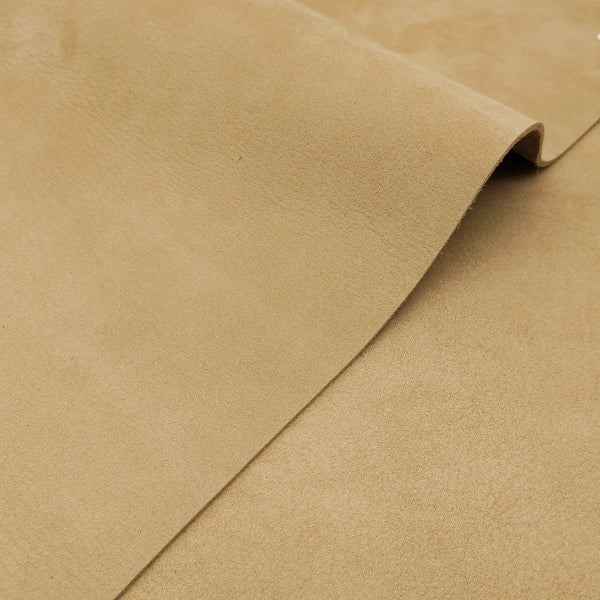 ・柔らかい鞣しの芯通し染色牛革です。革の表面を細かく起毛させたヌバック仕上げ、しっとりとした手触りが魅力です