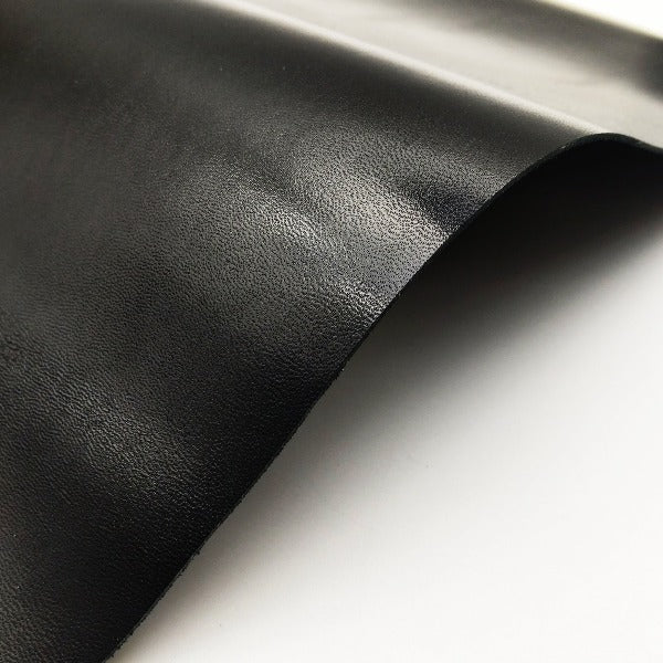 ・厚さは約0.6mm。光沢は強め、しっかりとハリのある質感の山羊革です