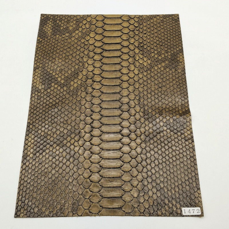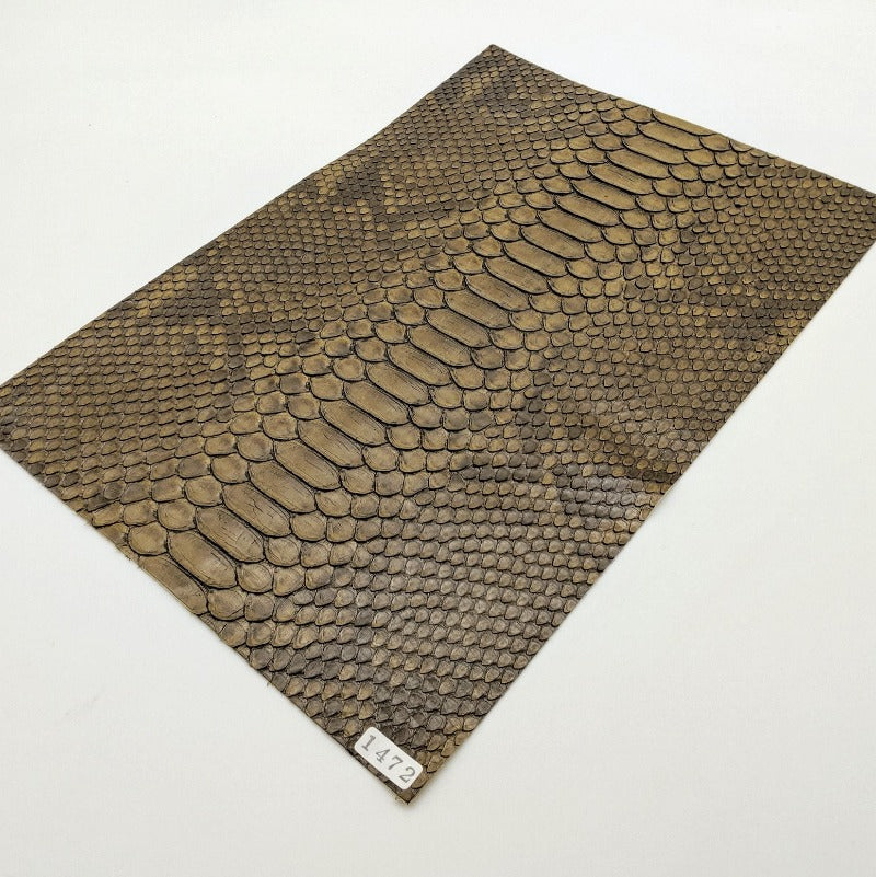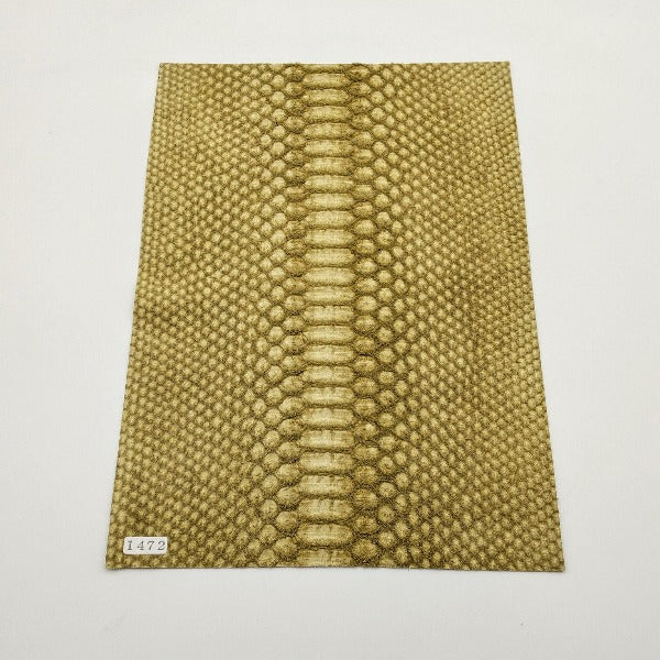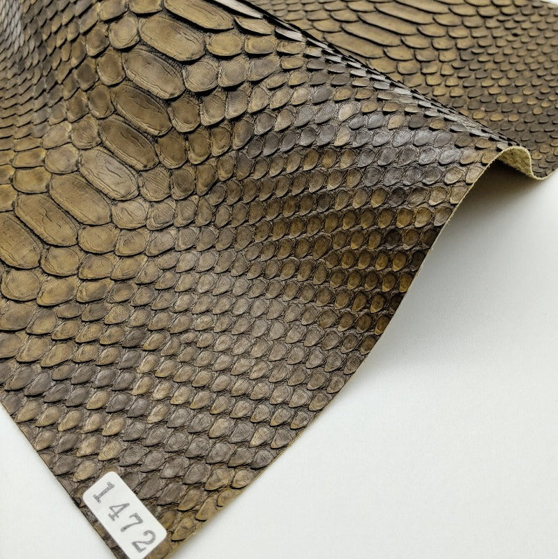 ヘビ革/Dパイソン【A4/0.6mm】カーキ/ラッセル加工/背割/Sランク/h1472