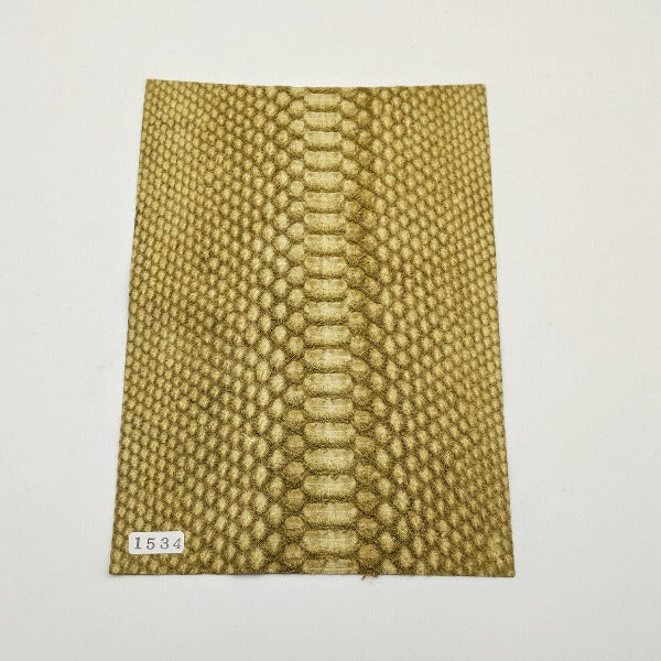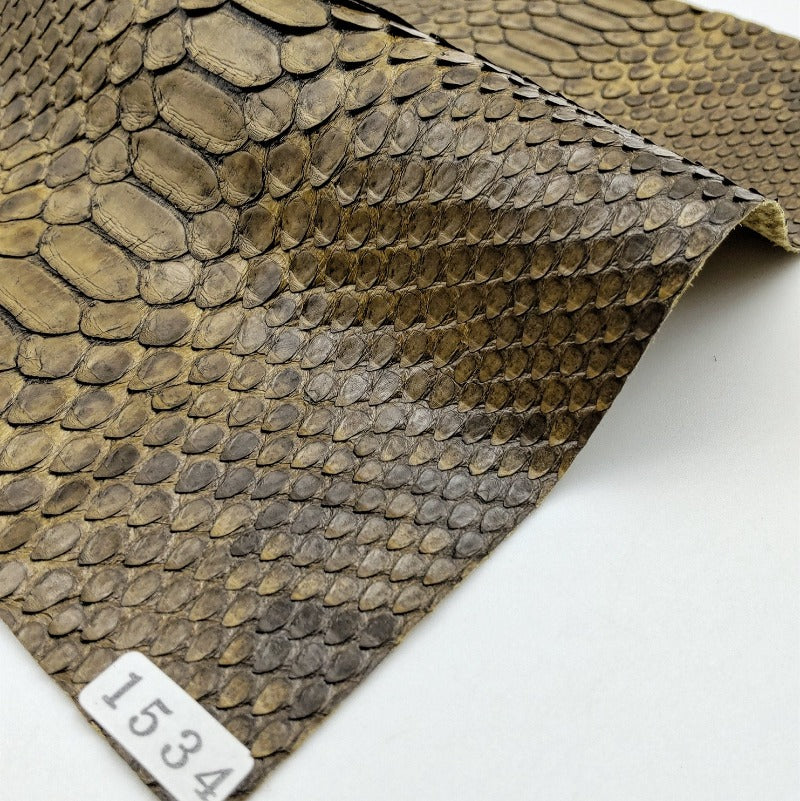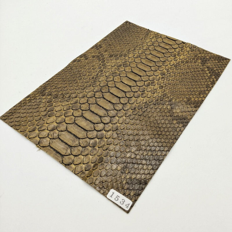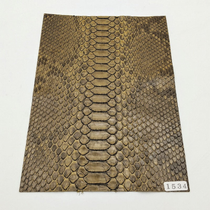 ヘビ革/Dパイソン【A5/0.5mm】カーキ/ラッセル加工/背割/Sランク/h1534