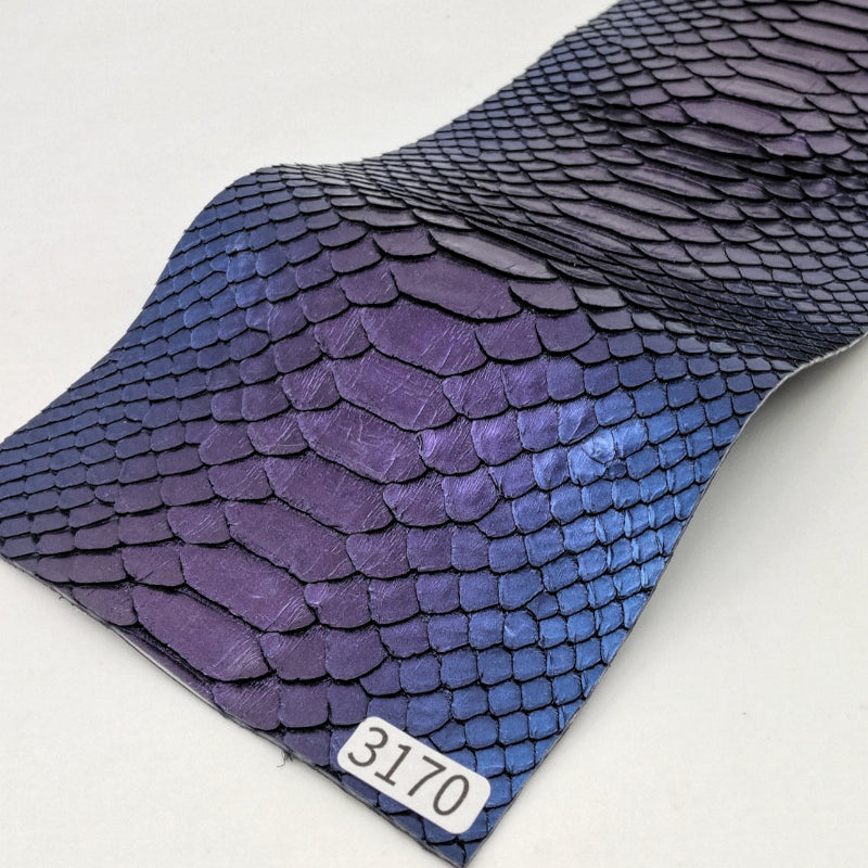 ・このヘビ革は、パープルとブルーのグラデーション、メタリック仕上げです