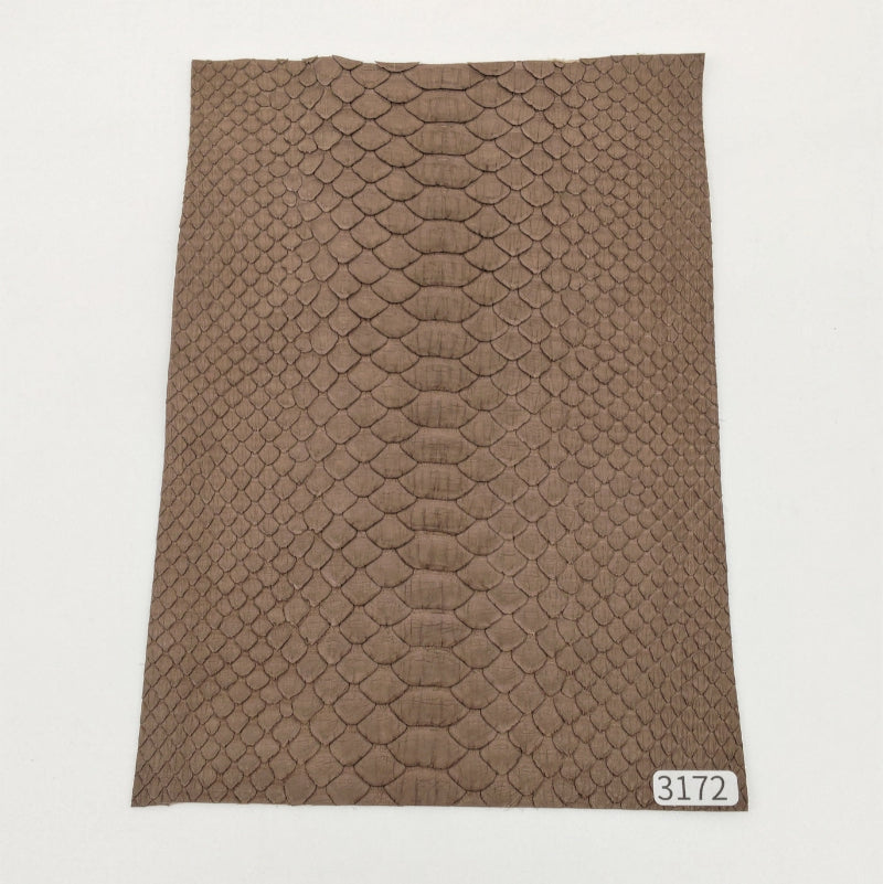 ・珍しいモラレスパイソン革を四角く裁断し、美観などをランク付けしているカットレザーです