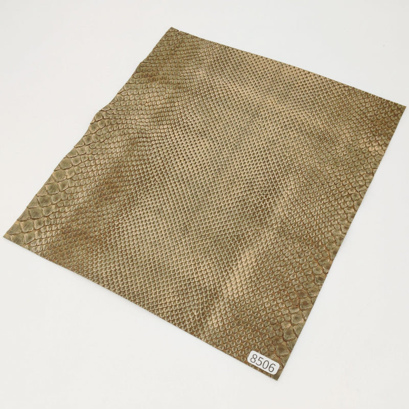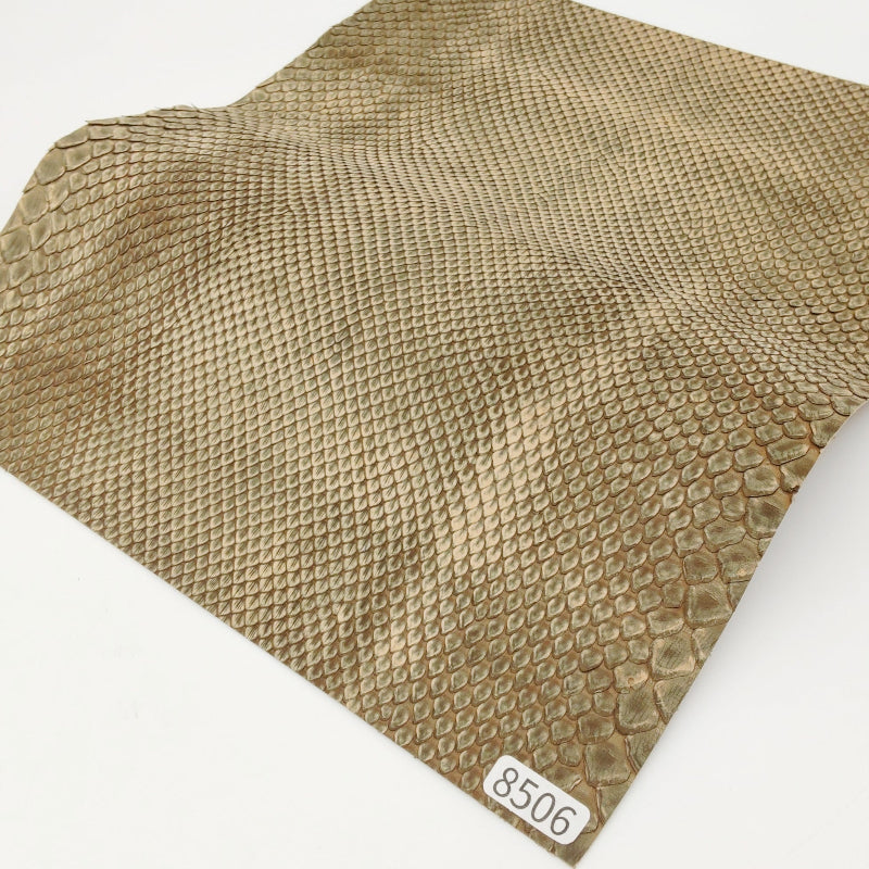 ヘビ革/ボア【24×22cm/0.7mm】デニム調カーキブラウン/Sランク/h8506