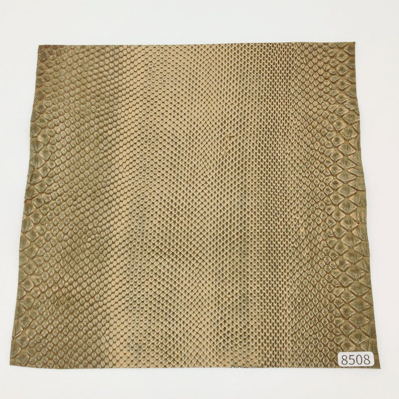 ヘビ革/ボア【21×21cm/0.7mm】デニム調カーキブラウン/Aランク/h8508