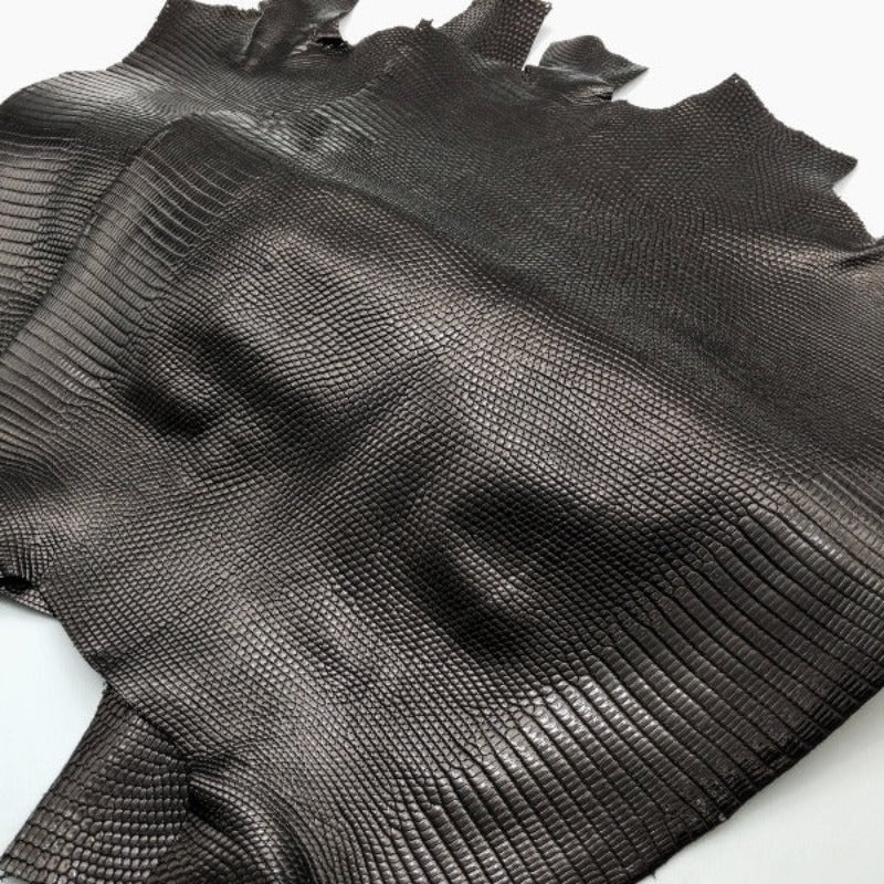 トカゲ革【最大幅35cm前後】ブラック/ツヤ強/腹割/t616