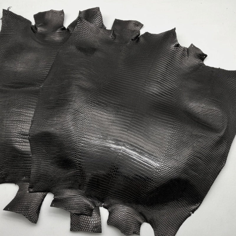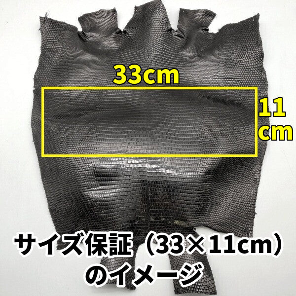 トカゲ革【最大幅34cm前後】ブラック/ツヤ強/背割/t807