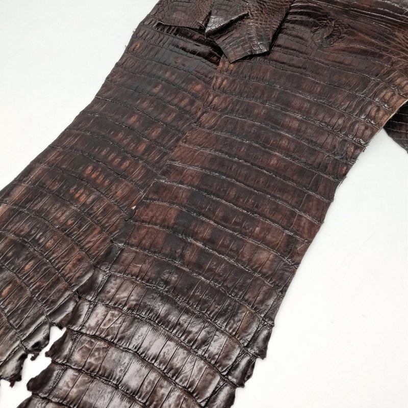 ・カイマンワニの特性上、腹部と背部は固く、脇腹部は柔らかめです