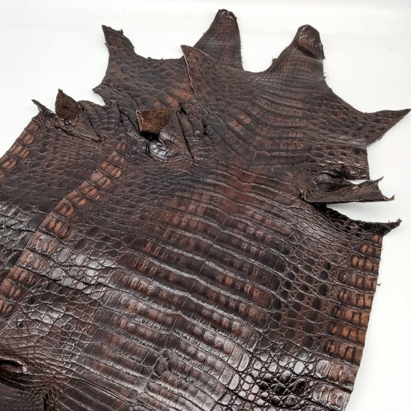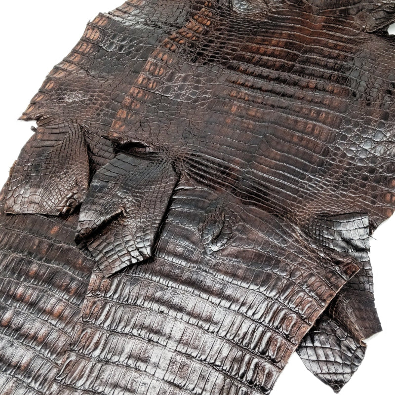 ワニ丸革/カイマン【品質保証21×21cm】ダークチョコ/半ツヤ/wc32-21
